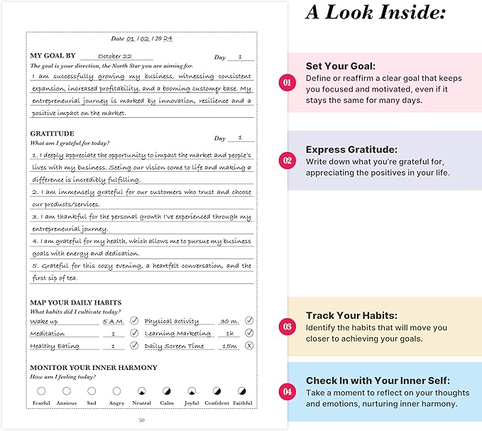 - ⨠Undated Flexibility ā Start Anytime: Free yourself from rigid timelines. The undated format lets you begin and progress at your own pace, making this journal ideal for personal growth at any moment.