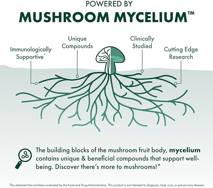 - Powered by Mushroom Mycelium: Our organic mushroom mycelium is grown on organic brown rice substrate; third-party studies show that mushroom mycelium and fermented rice substrate support your health*