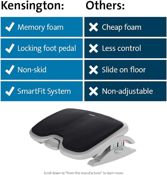 Kensington Foot Rest For Under Desk At Work, Smartfit Comfort Memory Foam Angle and Height Adjustable Footrest, Non-Skid Foot Stool For Under Office Desk, White/Black K56144USF