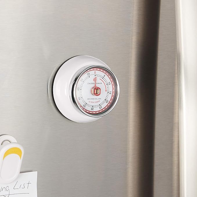 Zassenhaus Magnetic Retro Kitchen Timer, Classic Mechanical Cooking Timer (White)