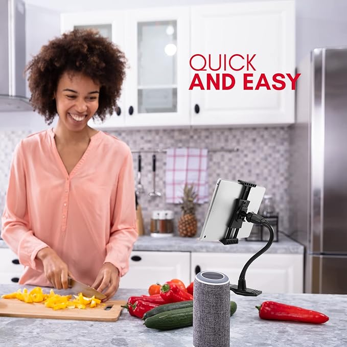 - Easily adjustable and flexible 11" extra long neck that allows you to securely place your device in your preferred position.