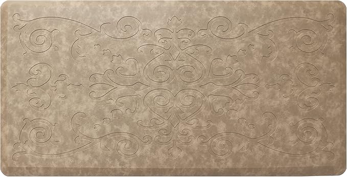 J&V TEXTILES Medallion Embossed Kitchen Mat Cushioned Anti Fatigue Floor Mat, Thick Non Slip Waterproof Kitchen Rugs and Mats, Standing Mat for Kitchen,Floor,Desk,Sink,Laundry, (Beige, 17" X 28")