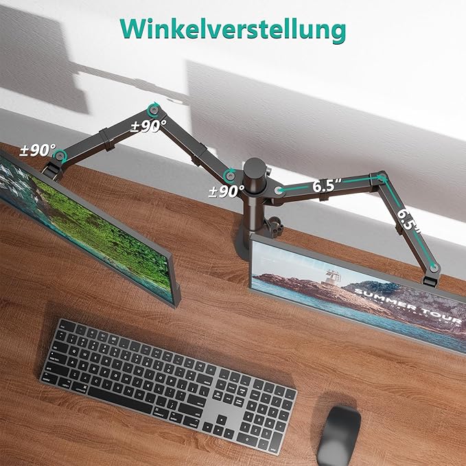 - Fully Adjustment: The fully adjuatable dual monitor arm provide the high-grade arms extend and retract, +/-90° tilt and swivel to change reading angles, and 360° rotate from landscape to portrait mode