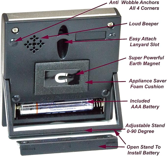 - Strongest Timer Magnet Listed Anywhere: Powerful Neodymium earth magnet & anti-scratch appliance saver foam. Our timers won't slide down your fridge or scratch appliances. Anti-Wobble Stabilizing Anchor Points: Designed on all 4 corners eliminating wobble, pivot, or movement when buttons are pressed while magnet secured. What good is a timer you can’t use while attached? This timer won't pop off your range hood and backflip into your boiling soup because you hit the off button. "No soup fer yu"