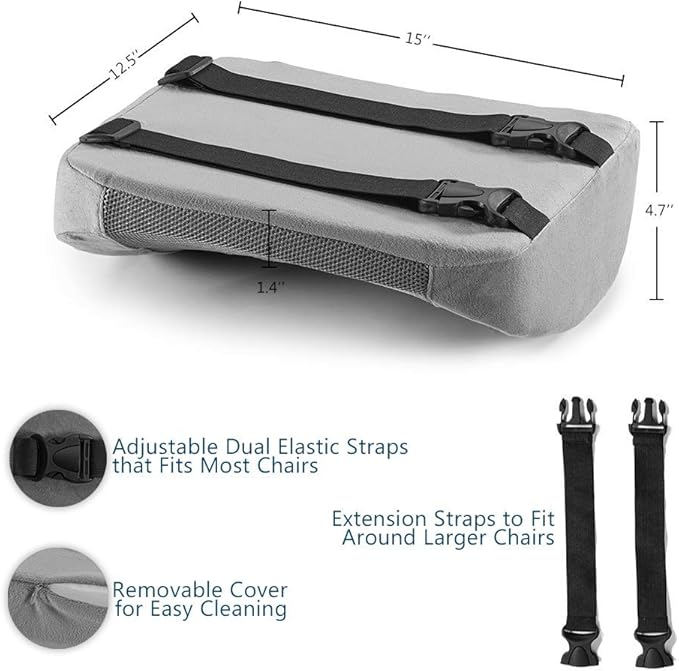 - 3D Ventilative Mesh & Adjustable Strap - Fits many chairs with elastic strap. Breathable and removable cover for easy cleaning. ComfiLife Lumbar Pillow comes with an adjustable strap however it may not fit some contoured seats, car seats and large office chairs. Product Dimensions: 15 x 12.5 x 4.7 inches