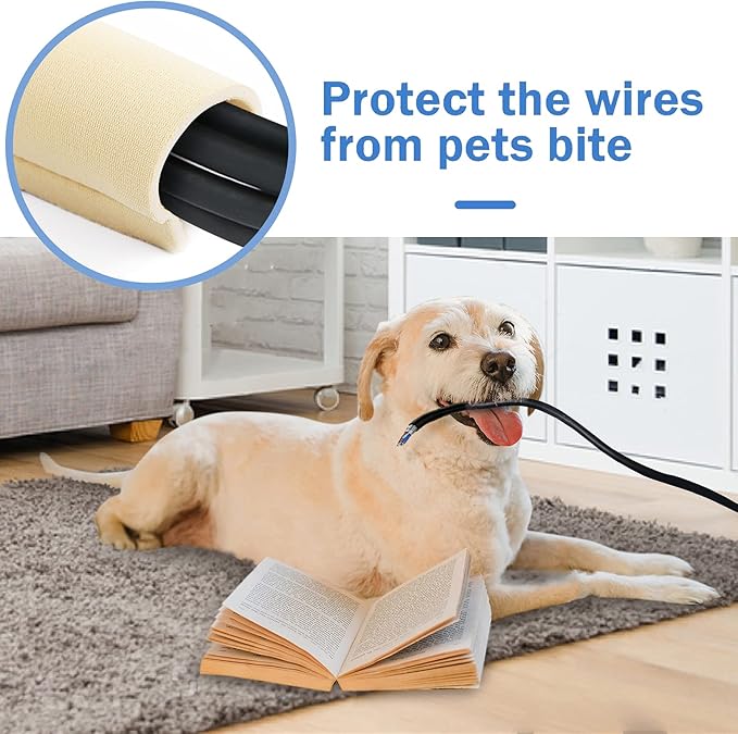 JOTO 4 Pack Cable Management Sleeve, 19-20 Inches Cord Organizer System with Zipper for TV Computer Office Home Entertainment, Flexible Cable Sleeve Wrap Cover Wire Hider System -Beige