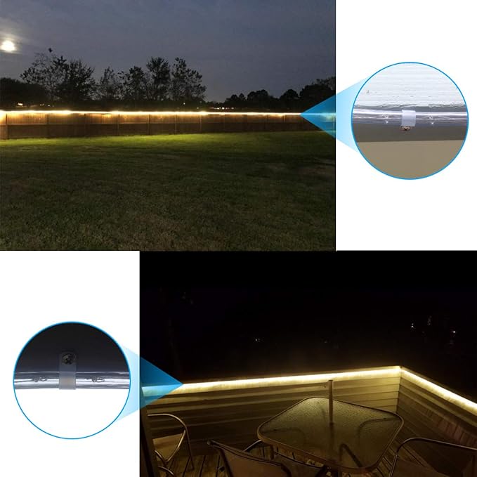- STYLISH DESIGN & EASY APPLICATION - The P-Style design mounting clips are flexible, simple and innovative. Perfect design you just need to loop the clip over the rope light and screw it into the deck/wood/wall. Much better and easier for installation than the other old styles straps. Satisfaction ensured.