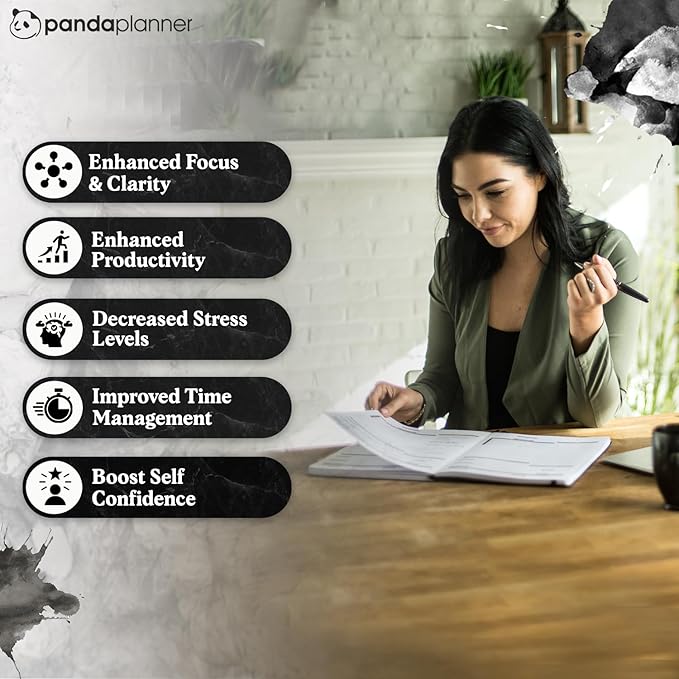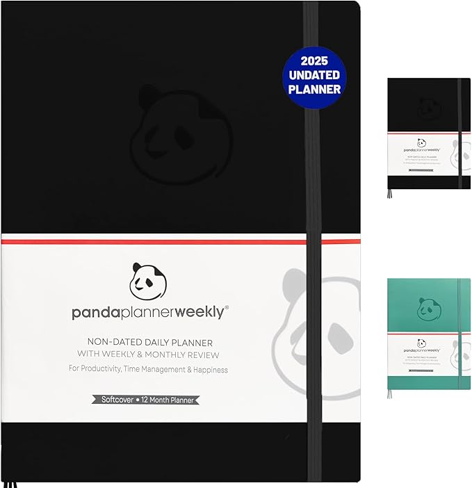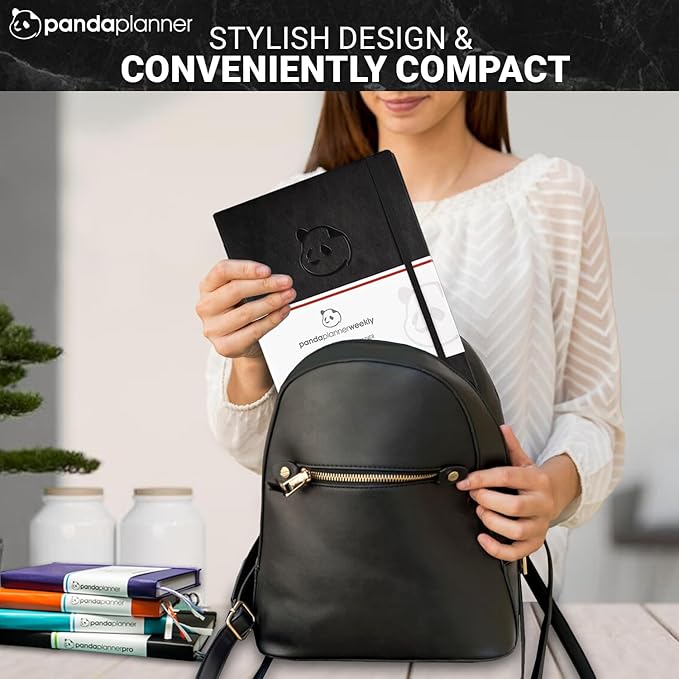 Panda Planner Weekly 2025-2026, Undated Weekly Planner for Office, School & Home – 8"x11" Soft Vegan Leather Organizer Notebook with To-Do Lists, Habit Tracker, Notes & Agenda – Black