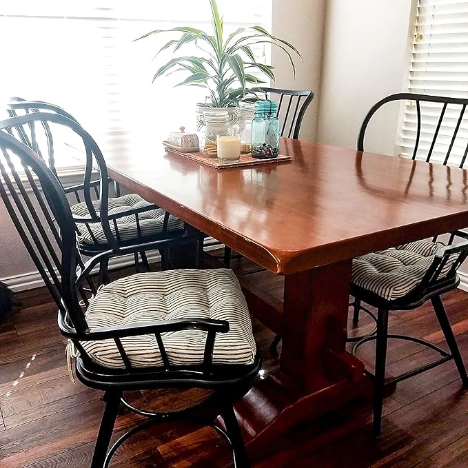- MACHINE WASHABLE & REVERSIBLE - Ticking Stripe Dining chair cushions reverse to same fabric on both sides.