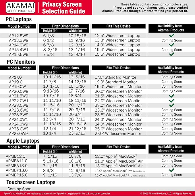 - EASY INSTALLATION: It's a snap to apply your Akamai privacy cover. We use the highest quality 3M adhesives to ensure long lasting protection. We've included full installation instructions so you'll have no problem applying the filter to your screens.