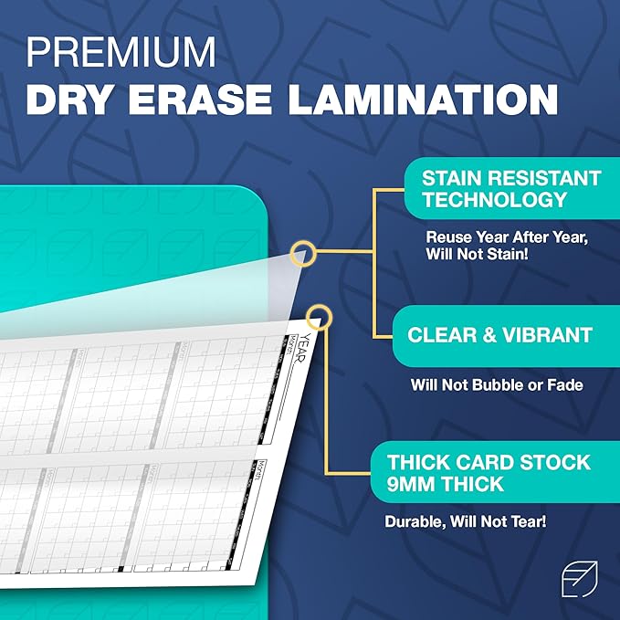 - Superior Erasability: Experience flawless writing and erasing on our dry erase calendar. Featuring a specially treated laminated surface, our calendar ensures smooth writing with dry, wet, and chalkboard markers, guaranteeing clear wipe-offs every time without ghosting or staining.