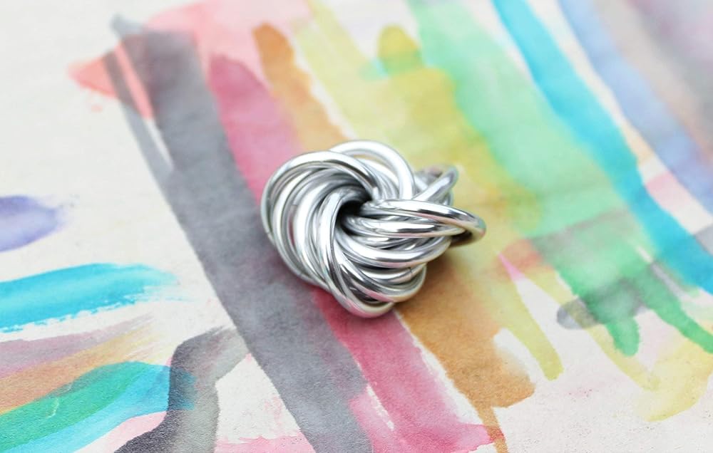 Möbii Fidget Ball (Solid Color): Quiet Mobius ADHD Anxiety Stim Stress Relief Toy Tool for Home Travel Office or Desk (Small, Full, SilverStar)