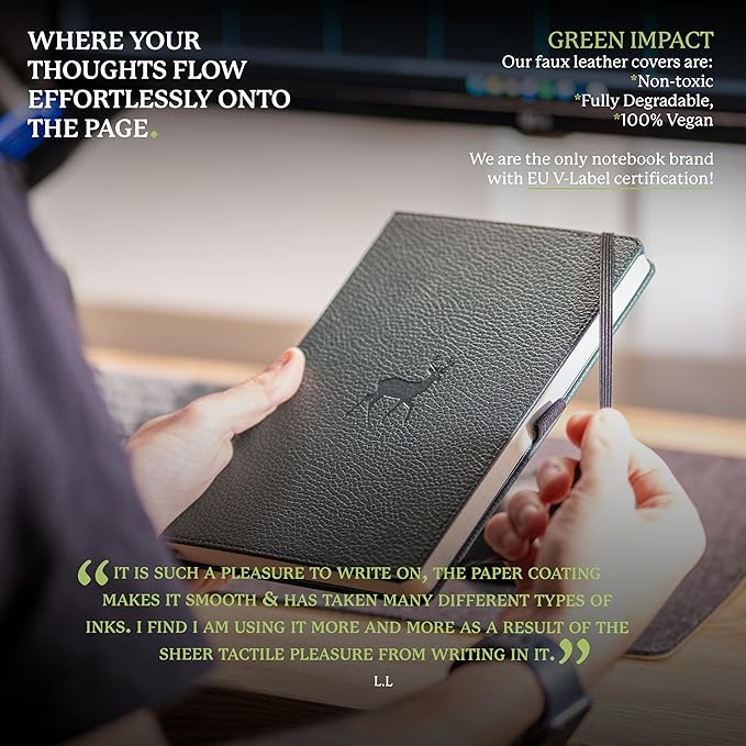 - FSC CERTIFIED AND THE ONLY VEGAN CERTIFIED NOTEBOOK: Made from degradable and recyclable materials and only FSC certified paper. 100% Vegan!