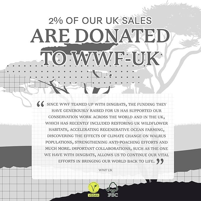 - THE ONLY VEGAN CERTIFIED NOTEBOOK: Made from recyclable materials and purely FSC certified paper, this handsome lined notebook is 100% Vegan Certified! We wear this badge with honour, and hope you join our pledge to make the environment a better place, one Dingbats pocket notebook at a time! For its UK sales, Dingbats* Notebooks Ltd donates 2% of its revenue to WWF-UK, a charity registered in England and Wales (1081247)
