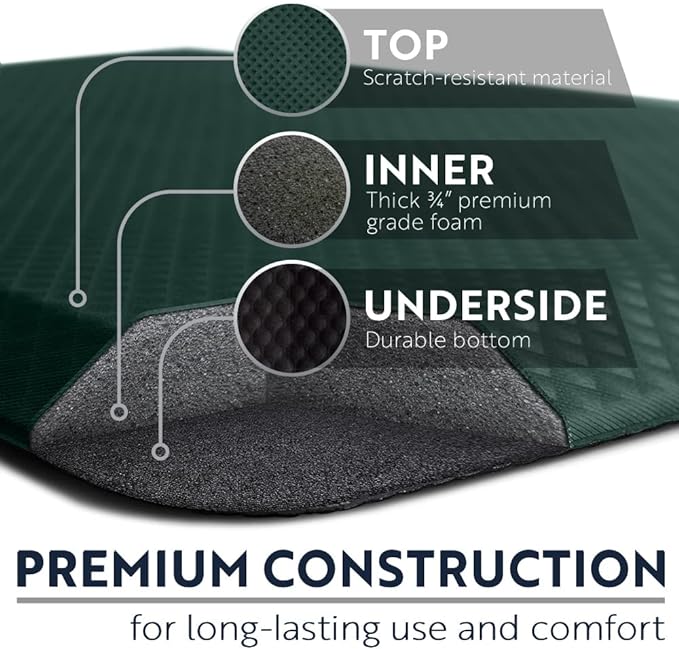 KANGAROO Thick Ergonomic Anti Fatigue Mats for Kitchen Floor, Cushioned Standing Office Desk Mat, Waterproof Scratch Resistant Topside, Supportive All Day Comfort Padded Foam Rugs, 20x32, Hunter Green