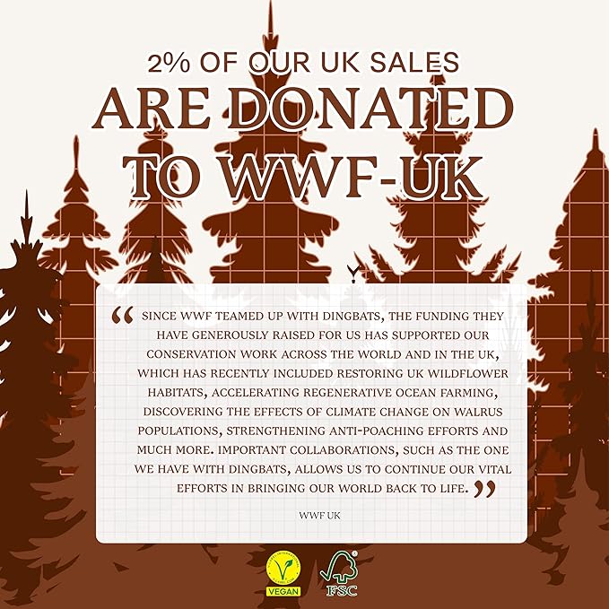 - THE ONLY VEGAN CERTIFIED NOTEBOOK: Made from recyclable materials and purely FSC certified paper, this handsome squared notebook is 100% Vegan Certified! We wear this badge with honour, and hope you join our pledge to make the environment a better place, one Dingbats pocket notebook at a time! For its UK sales, Dingbats* Notebooks Ltd donates 2% of its revenue to WWF-UK, a charity registered in England and Wales (1081247)
