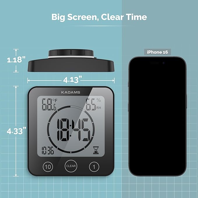 - 【 Efficient Time Management】Stay organized and save resources with KADAMS waterproof shower timer clock, featuring an LCD touch display, designed to help you keep track of your daily schedule.