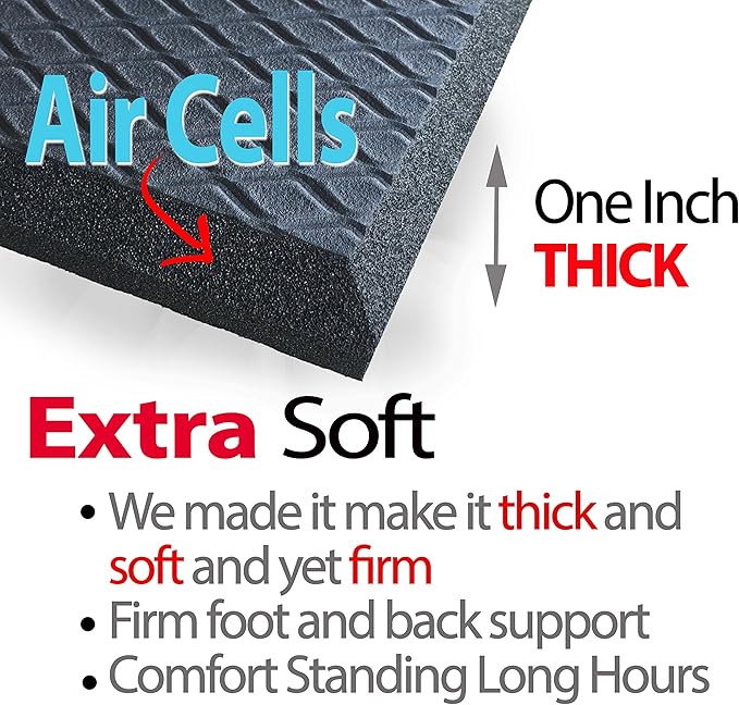 - Our air soft, anti-fatigue comfort mat is designed for maximum stability and ease of use - simply wipe and clean the pads with hot water and soap to get it back to new!