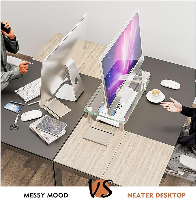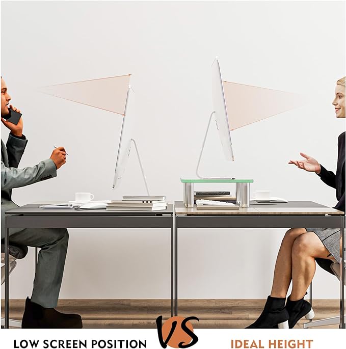 - Good Health: Monitor or notebook computer is elevated to a proper ergonomic viewing position, creating best posture which helps reduce neck and back strain,Then stow laptop underneath monitor riser for space-saving storage