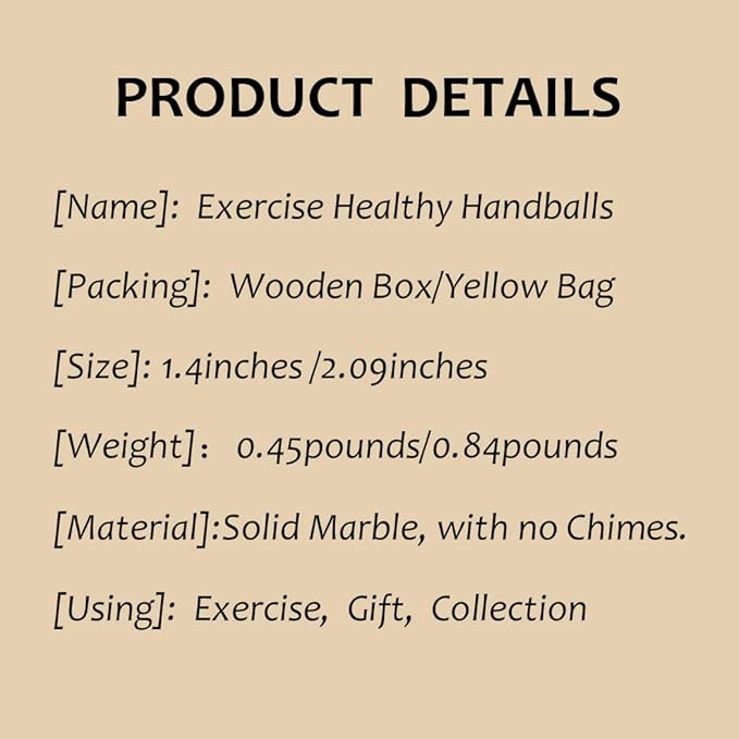 - PRODUCT ATTRIBUTES — Product Specifications:12cmX12cm. Including: 2 balls (One pair),Product Size: Each ball height (about) 1.4in, total (about) weight: 0.4lb.