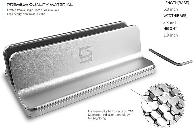- 【QUALITY MATERIAL 】 Our vertical laptop stand is made with Premium Aluminum, State of the Art CNC Laser Technology, Sand Blasted, Brushed Surface, Rounded Edges, Eco Friendly Non-toxic Silicone mat in the Groove and Bottom, Scratch Resistant and Durable for your Everyday Use.