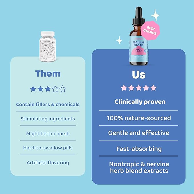 - KIDS FOCUS & WELLNESS SUPPORT – Genius Drops are a natural kids supplement crafted with ginkgo biloba liquid. These brain support vitamins for kids feature a naturally flavored herbal blend, designed for children ages 3 and up (including teenagers). Also a gentle, and allergen-free option, ideal for supporting kids’ well-being during school, study, and other daily activities.