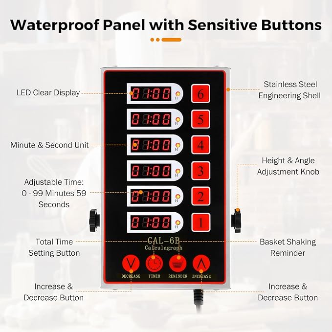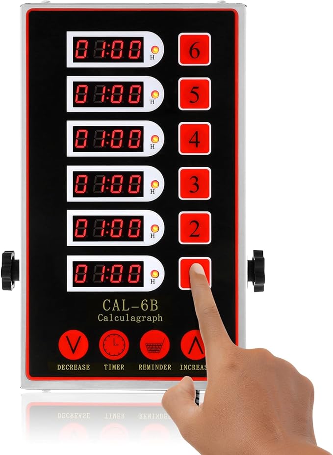 - PRACTICAL TIMER FUNCTION - Each time window of BEAMNOVA 6-Channel Timer Clock can be set independently from 0 ~ 99 minutes and 59 seconds (0 to 99 hours 59 minutes). Each set of the timer contains 1 total time and 1 basket shaking time (interval reminder time). The setting of each time window does not affect the setting of other time windows. Users can also reset a time window by pushing the button on the side.