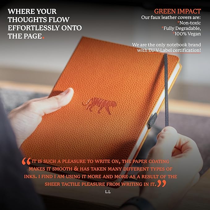 - THE ONLY VEGAN CERTIFIED NOTEBOOK: Made from recyclable materials and purely FSC certified paper, this handsome dotted journal is 100% Vegan Certified! We wear this badge with honour, and hope you join our pledge to make the environment a better place, one Dingbats pocket notebook at a time! For its UK sales, Dingbats* Notebooks Ltd donates 2% of its revenue to WWF-UK, a charity registered in England and Wales (1081247)