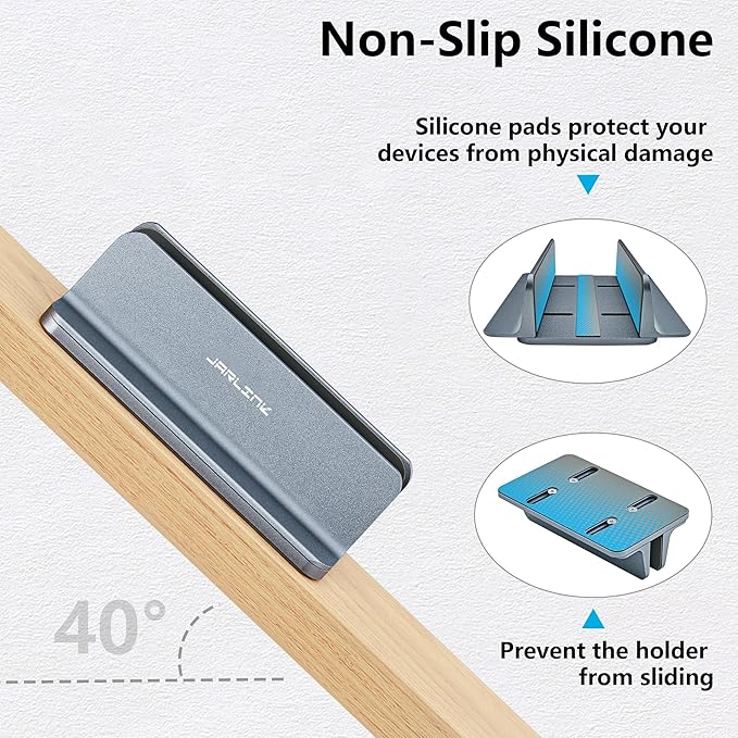 - Premium Package Content: Your purchase includes one JARLINK Vertical Laptop Stand and one Allen Key. For any issues during use, please don't hesitate to contact JARLINK support. The good-quality material and exquisite workmanship provide a practical yet aesthetically pleasing solution for desk organization.