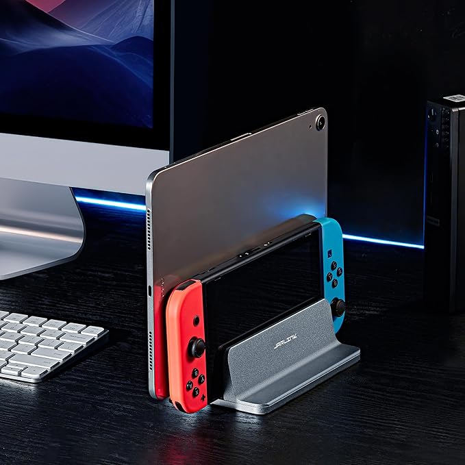 - Efficient Space Utilization: This vertical stand cradles your monitor, keeping your laptop secure and away from any spills. It helps create a neat and organized workspace by maximizing your desk area.