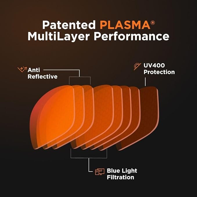 - 🛡️ Patented PLASMA Technology (Amber): Gaming glasses. Filters 100% of blue light from 380 to 400nm // 86% across the spectrum [380nm to 450nm]. Provides 100% UV protection.