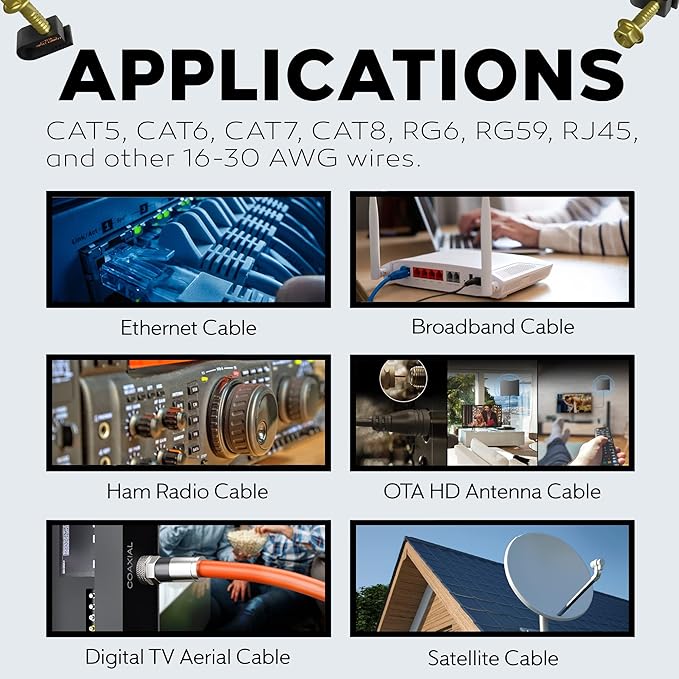 - WIDE APPLICATIONS – These cable clips are suitable for a wide range of applications, including home, office, and electrical uses, and are compatible with various wire types such as ethernet, electrical, satellite dish, coaxial, CAT5, CAT6, CAT7, CAT8, RG6, RG59, RJ45, and other 16-30 AWG wires. These wall cable holders also assist in keeping the room neat and organized.