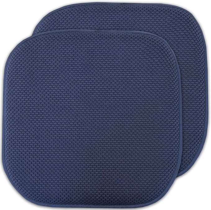 Sweet Home Collection Memory Foam Chair Cushion Honeycomb Pattern Solid Color Slip Non Skid Rubber Back Ultimate Comfort and Softness Rounded Square 16" x 16" Seat Cover,2 Pack,Navy Blue, 2 Piece