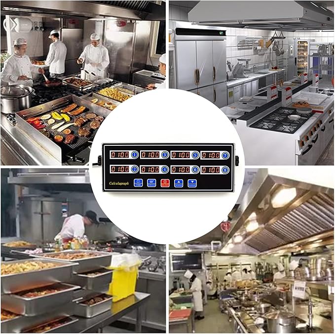 Li Bai Commercial 8 Channels Kitchen Timer Restaurant Cooking Timers 8 Channels Digital Alarm Reminder Multi-Event,Clock Loud Adjustable Clear LED Display, Stainless Steel(Black)