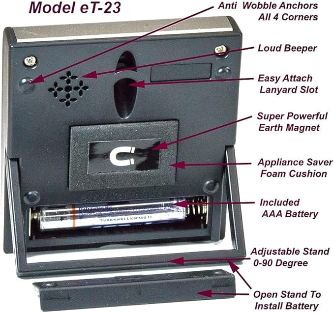 - Strongest Timer Magnet Listed Anywhere: Powerful Neodymium earth magnet & anti-scratch appliance saver foam. Our timers won't slide down your fridge or scratch appliances. Anti-Wobble Stabilizing Anchor Points: Designed on all 4 corners eliminating wobble, pivot, or movement when buttons are pressed while magnet secured. What good is a timer you can’t use while attached? This timer won't pop off your range hood and backflip into your boiling soup because you hit the off button. "No soup fer yu"