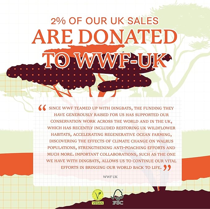- THE ONLY VEGAN CERTIFIED NOTEBOOK: Made from recyclable materials and purely FSC certified paper, this handsome lined notebook is 100% Vegan Certified! We wear this badge with honour, and hope you join our pledge to make the environment a better place, one Dingbats pocket notebook at a time! For its UK sales, Dingbats* Notebooks Ltd donates 2% of its revenue to WWF-UK, a charity registered in England and Wales (1081247)
