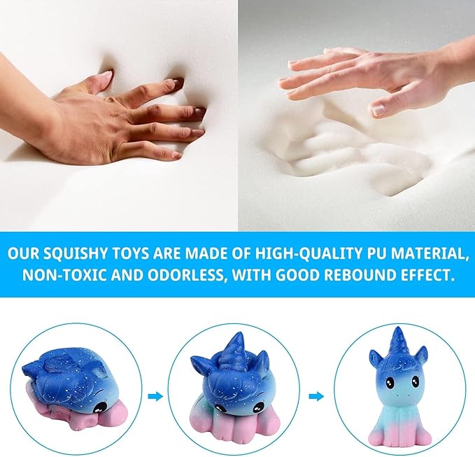 - Feature: Kawaii unicorn squishys scented stress balls flexible is good value.It's great for relieves your stress, festival party favor, easter ,children decoration, Xmas present, Halloween present, birthday present, festival item, children's kitchen food toys, baby early childhood education toys etc.