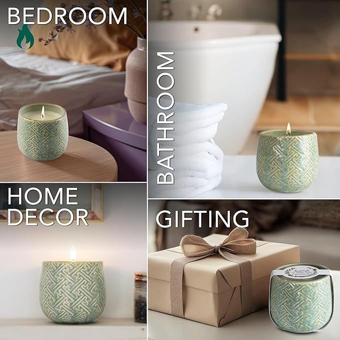 - QUALITY CONTAINER: The Ida container is made with care and offers a hand-made, Green Ceramic with a volume of 10oz (295ml); capture the scent of lavender candles for home and reuse it after it burns out to plant wildflowers