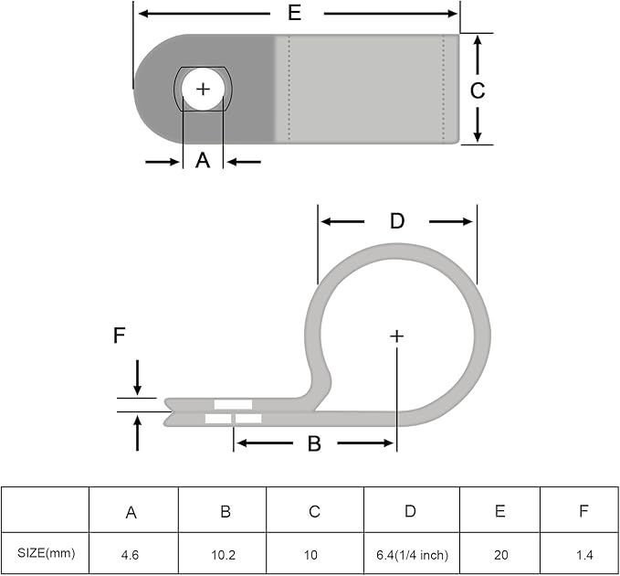 - Size: the r-type cable clip has a 1/ 4 inch closed diameter; Quantity: 50 pack r-type clamps and 50 pack matching screws, they can be applied repeatedly