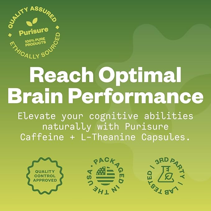 Caffeine Theanine Capsules, Caffeine Pills 100mg L Theanine for Pre Workout, Energy, and Clarity, Energy Pills for Fatigue, Nootropic Supplement, 120 Day Supply