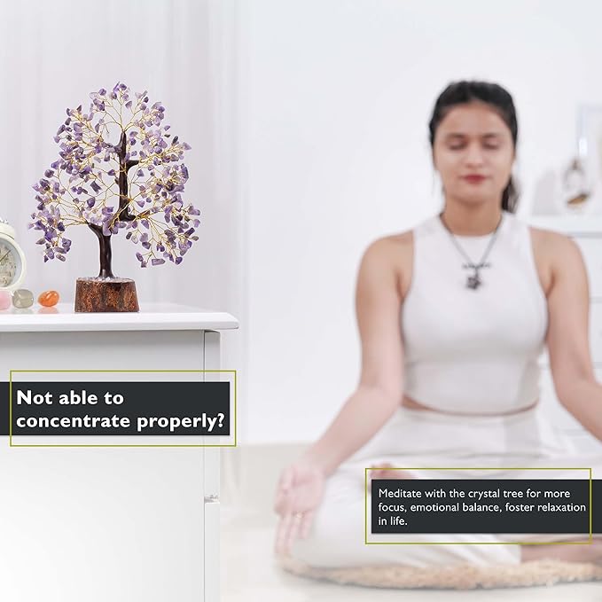 FASHIONZAADI Amethyst Crystals Tree of Life - Stones and Crystals - Bonsai Tree - Good Luck Gifts for Women - Meditation Accessories - Chakra Stones Decor