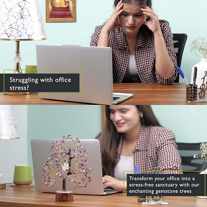 - Feng shui tree specification: Amethyst feng shui tree figurine made from the beautiful small amethyst crystal beads, protection crystals and golden wire with the approximate size 10-12 Inch which is good for spiritual decor, purpose, gifting etc. The chakra stones tree is crafted by the skilled artisans in INDIA who gave a beautiful look to the vastu tree. Gem tree comes in premium box packaging which you can easily use as a gifting purpose also.