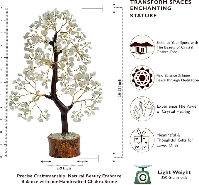 FASHIONZAADI Green Jade Chakra Tree of Life, Crystal for Positive Energy, Feng Shui Home Decor - Handmade Gemstone Bonsai Money Tree,- Green Healing Crystals, Wealth & Good Luck Stones Spiritual Gift