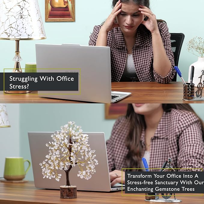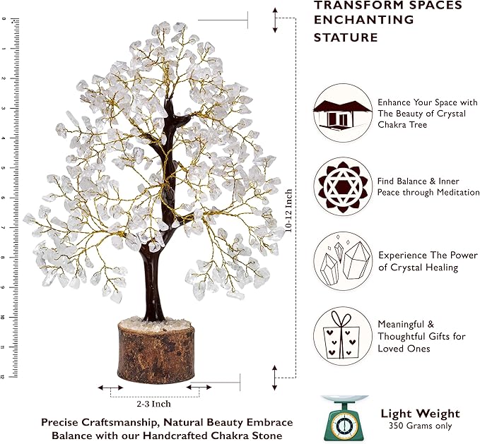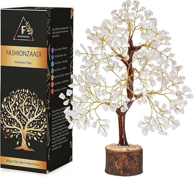 FASHIONZAADI Clear Quartz Crystals, Feng Shui Tree, Gemstone Tree - Spiritual Décor, Chakra Stone, Premium Meditation Decor, Good Luck Gifts, Home Decor