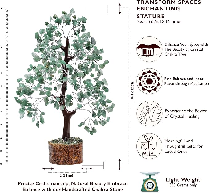 - Aventurine crystals: This beautiful green aventurine natural gemstone tree size approx. 10-12 inches in height(when open up the leaves of the tree). Green aventurine crystal releases old patterns, habits, and disappointments so new growth can take place. Crystal tree brings optimism and a zest for life and allows us to move forward with confidence and embrace change.