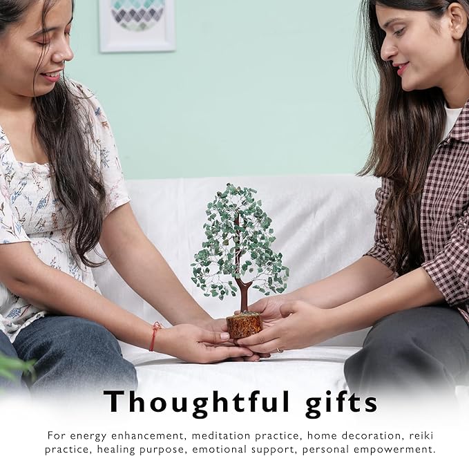 FASHIONZAADI Green Aventurine Crystal Tree, Crystals and Stones, Gem Tree, Healing Gemstones and Crystals Home Decor, Meditation Decor, Spiritual Gifts for Women, Good Luck Gift