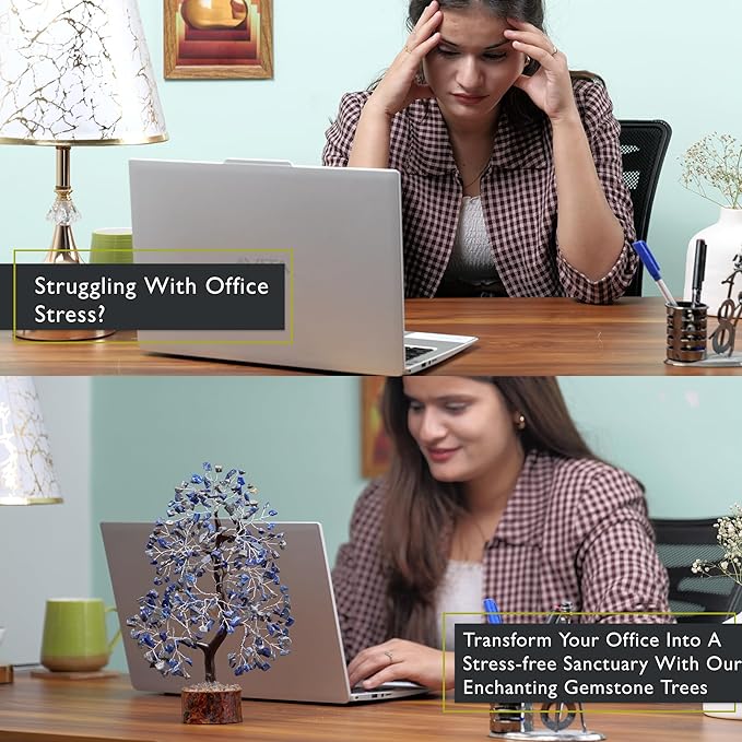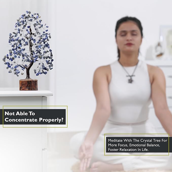 - Crystal tree specification: Lapis lazuli gemstone tree sculpture made from the beautiful small lapis lazuli crystal beads and silver wire with the approximate size 10-12 Inch. The bonsai good luck tree is handmade is INDIA, come with the premium box packaging which you can easily use as a gifting purpose also. Also use for office shelf decor, blue office decor, fung shui decor etc. Blue Gem tree also use for gifting purpose and meditation accessories.