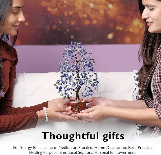 FASHIONZAADI Lapis Lazuli Crystal Tree of Life - Chakra Natural Handmade Gemstone Tree, Feng Shui Crystal Decoration, Money Spiritual Gift, Healing Crystal Chakra Decor