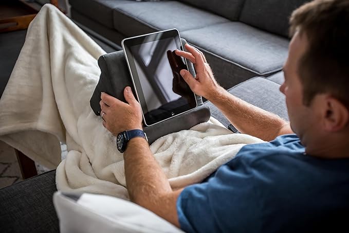 - FOR HOME & TRAVEL: Whether you're relaxing on the couch or killing time on a flight, this tablet- holder stand will help you have a hands-free experience. Use it as a car lap pad on a road trip, kindle holder or book holder for reading hands free in bed, as tablet holder for kids while watching cartoons or as tablet bed holder while creating content for your social media.