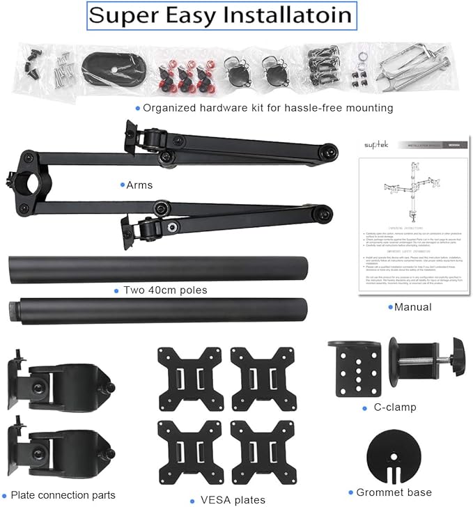 - Two install options - C-clamp and optional grommet base (fits desk up to 4" thickness) save your valuable desk space.